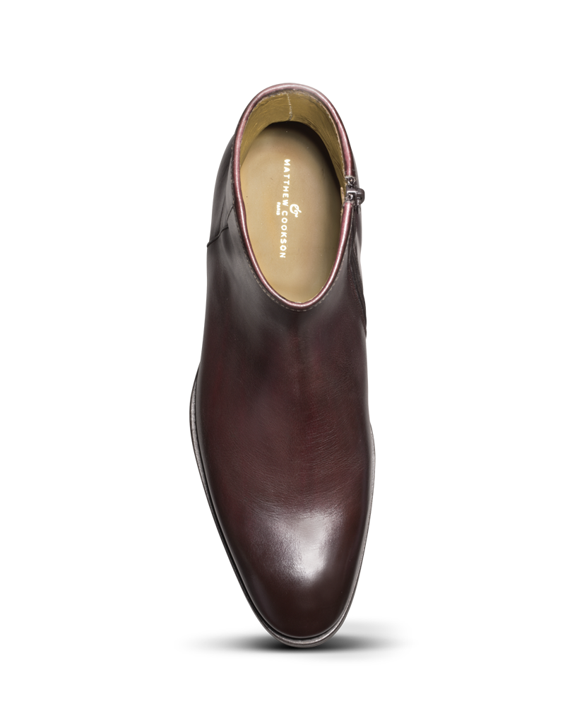 Les boots en cuir bordeaux zippées incarnent l’élégance naturelle, discrète mais affirmée.