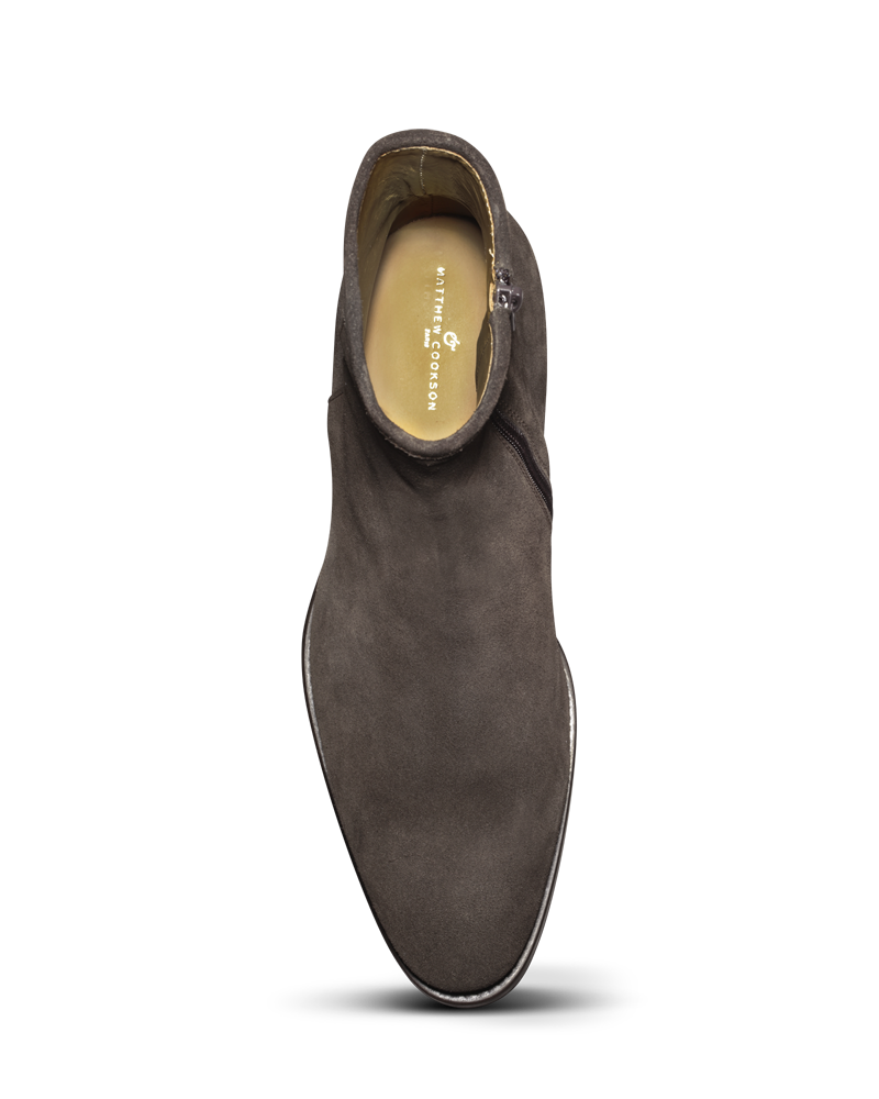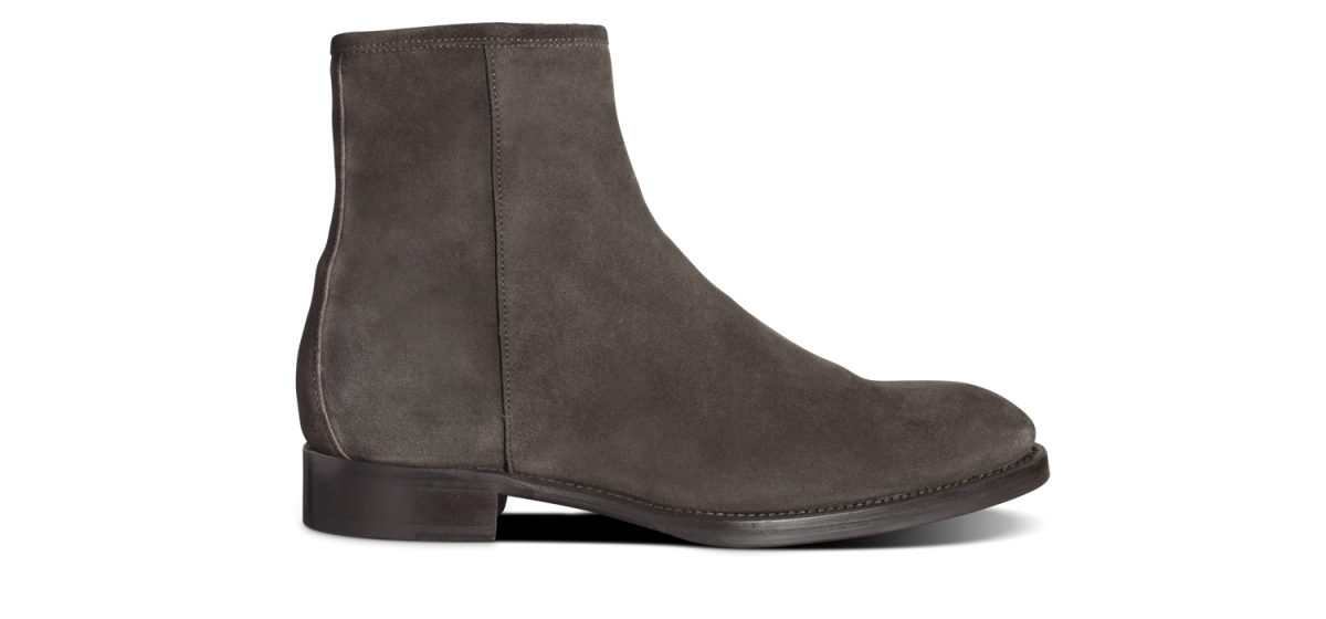Les boots zippées en veau velours chocolat incarnent l’élégance naturelle, discrète mais affirmée.